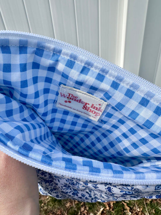 Handmade Quilted Book & Tablet Sleeve - Blue Florals
