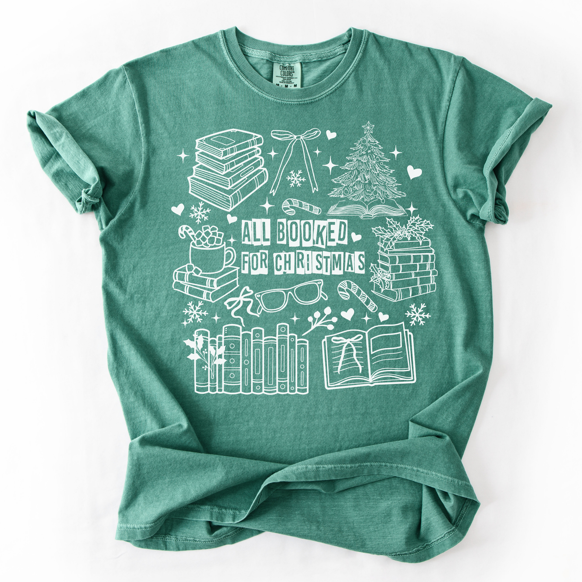 Get into the holiday spirit with our All Booked For Christmas Comfort Colors T-Shirt 🎄✨ — a cozy, high-quality tee that feels as soft as your favorite Christmas morning.