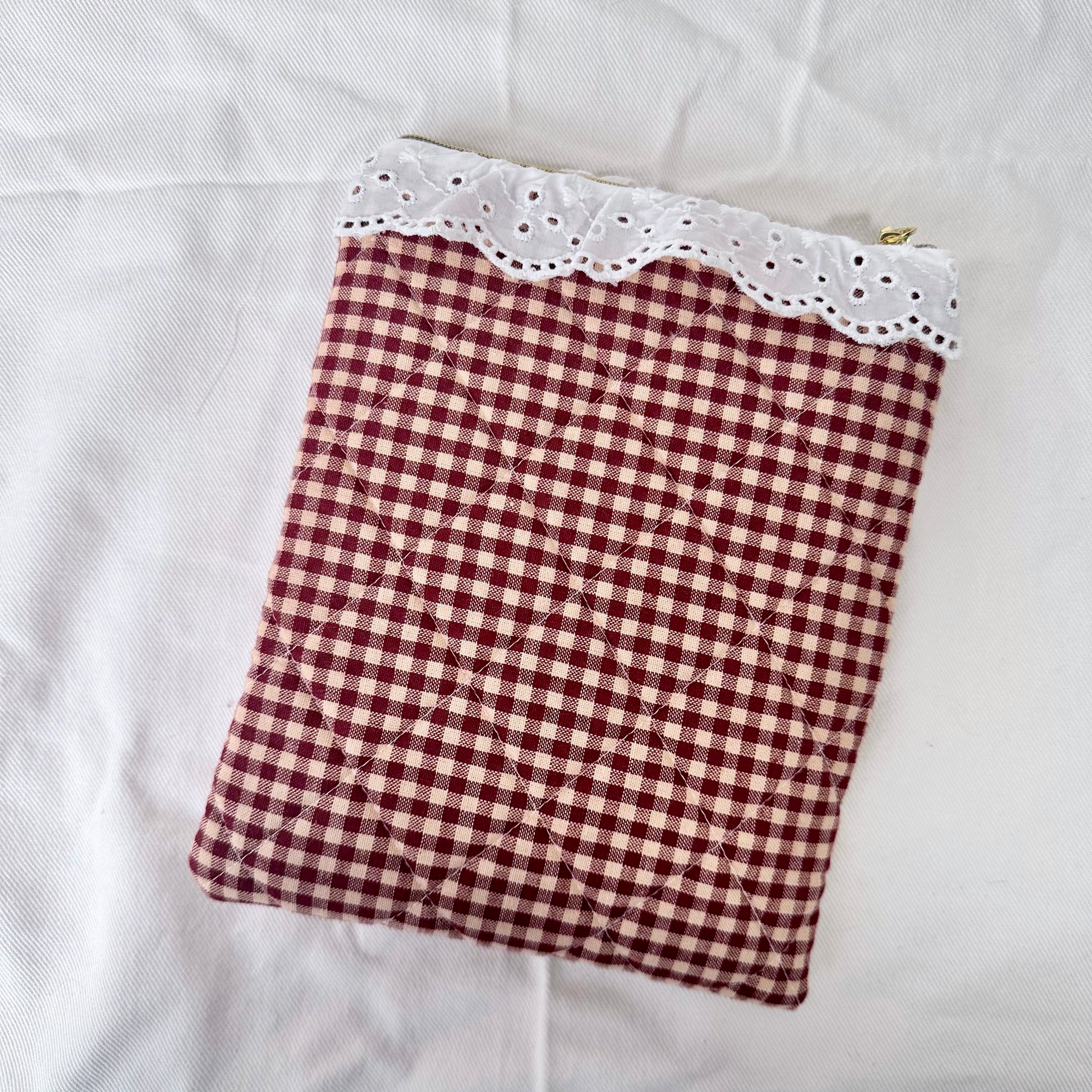 Add a cozy, timeless touch to your reading routine with this Brown Gingham Quilted Kindle Sleeve. Handmade with care, this padded e-reader case features a classic gingham pattern and soft quilted construction to help protect your Kindle from scratches, minor bumps, and everyday wear.