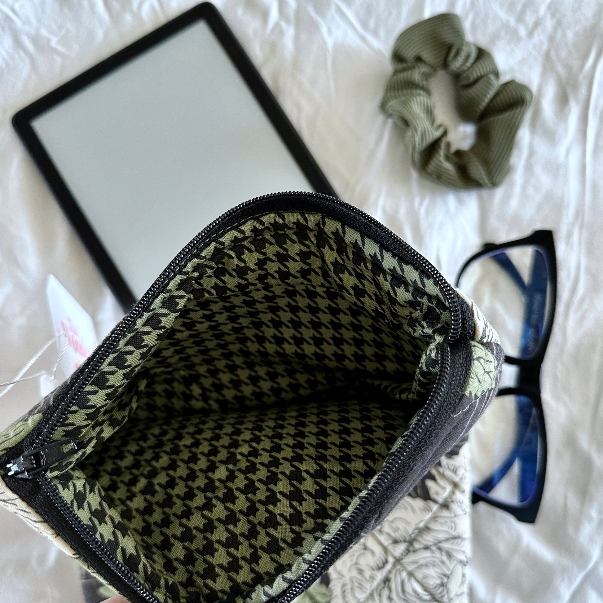 Featuring a beautiful spooky floral print in rich autumn tones, this sleeve combines dark cottagecore vibes with practical protection. Itβs fully lined with a chic houndstooth pattern, and the zipper closure keeps your e-reader secure and dust-free. A convenient snap hook is attached so you can easily clip it to your bag or keys for quick access.